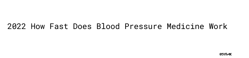 2022 How Fast Does Blood Pressure Medicine Work