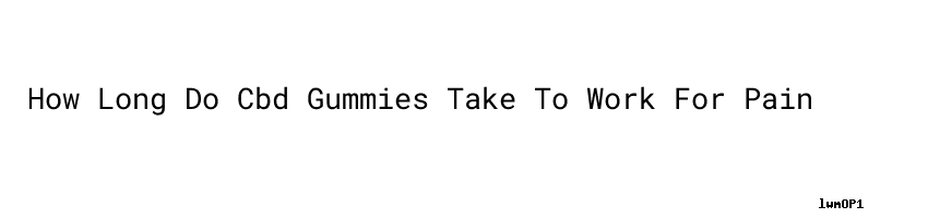 The reason why Gabriel best cbd gummy bears uk didn t kill Wuhen directly How Long Do Cbd Gummies Take To Work For Pain was because he wanted to see why this guy could bring this feeling to him.In front of tens of thousands of people, a full spectrum cbd gummy man named Wuxin also gave him He felt this buy karas orchards cbd gummies way, but he was no match for How Long Do Cbd Gummies Take To Work For Pain that person at the gummy bears cbd amazon power cbd gummy bears time.